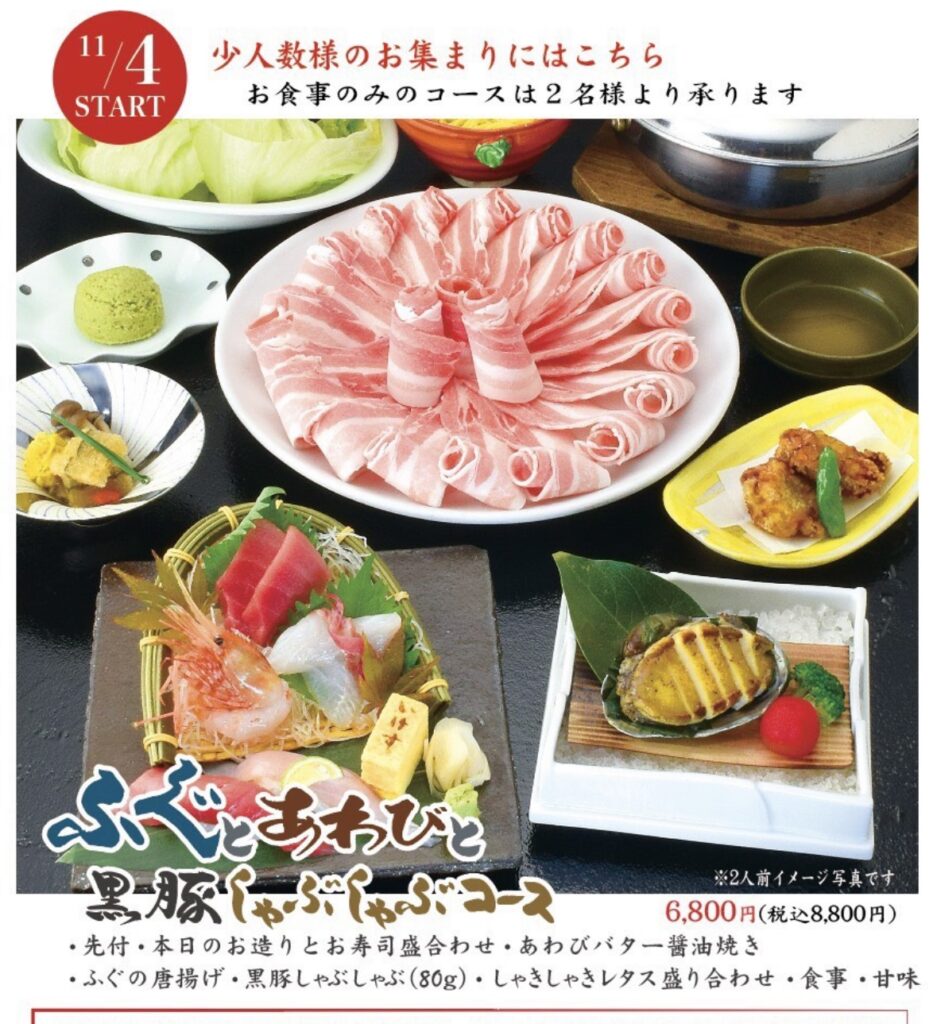 『ふぐとあわびと黒豚しゃぶしゃぶコース』