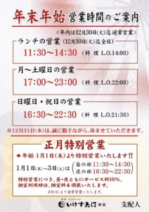 年末年始のご案内